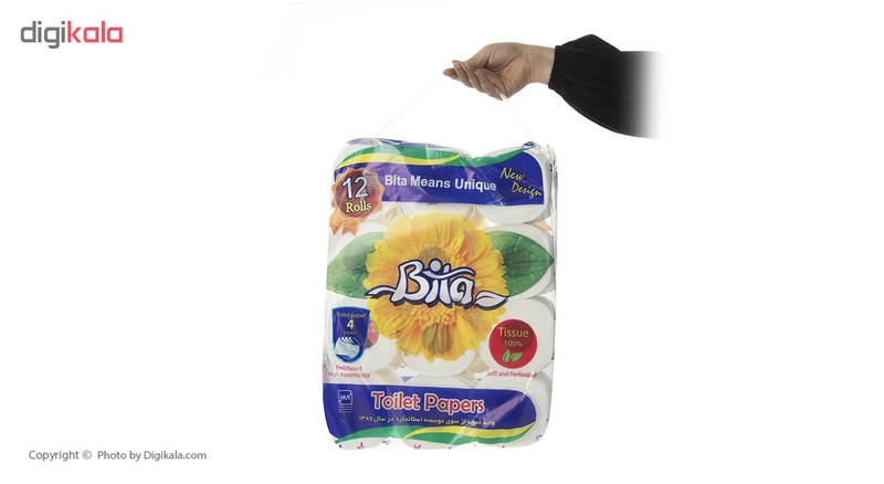 - 12 رول توالت 4 لایه - ساخته شده از کاغذ تیشو - نرم - امباس شده و دارای قدرت جذب بالا - سبک و حجیم شده - طول هر رول 14 متر - اندازه هر برگ: 100 × 120 میلیمتر - عرضه شده همراه با یک دستمال مرطوب جهت پاک کردن آرایش ( دارای ویتامین B5)