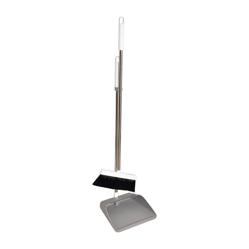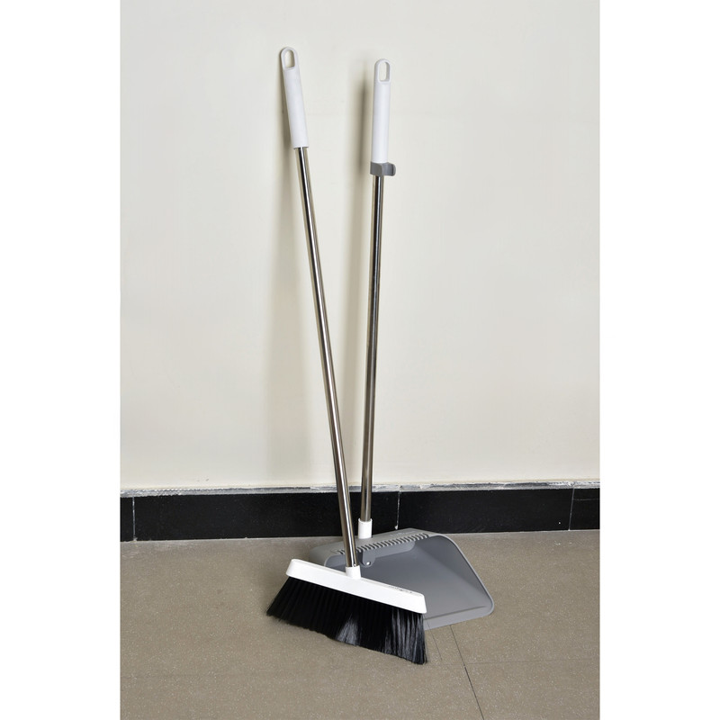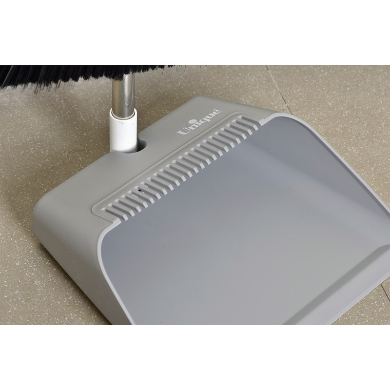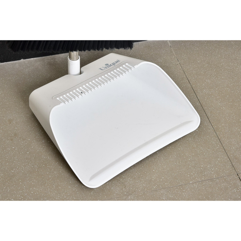 ست جارو و خاک انداز یونیک کد 2521 دارای دو رنگ طوسی و سفید می باشد و همچنین دارای شیار روی خاک انداز برای تمیز کردن برس جارو - دارای لاستیک جلوی خاک انداز برای نظافت بهتر - دسته فلزی و طول سری برس: ۲۳ سانتیمتر می باشد