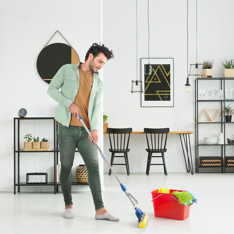 تی نظافتی اسفنجی 300 با آبگیری بالا و تمیز کنندگی فوق العاده با دسته فلزی 120 سانتیمتر و اهرم مخصوص آبگیری با بهترین کیفیت میباشد.زمین شوی 300 یک محصول جدید و کامل از مجموعه مهسان است، که چندین نوآوری مهم و کارآمد در آن صورت پذیرفته. این زمین شوی مانند سایر نمونه های مشابه، دارای اسفنجی اعجاب انگیز با قابلیت جذب بسیار بالای آب و پاک کنندگی استثنایی است. اسفنج زمین شوی قبل از مصرف سخت و استخوانی، ولی پس از هر بار آبگیری، نرم و قابل انعطاف می باشد. این اسفنج از جنس «پلی وینیل الکل» (PVA) و به طور کامل پاد باکتری بوده و مناسب ترین گزینه برای نظافت می باشد. یکی از مهمترین نوآوریهای انجام شده در ایرسا، حذف پیچ فلزی از روی یدک است که این کار تعویض یدک زمین شوی را بسیار آسان نموده و دیگر برای این کار نیازی به ابزار نیست. این مدل زمین شوی دارای چهار سری غلطک جهت آبگیری سریعتر و بهتر می باشد. یکی دیگر از نوآوریهای صورت پذیرفته در این محصول نصب دو اهرم متحرک پلاستیکی ما بین غلطک ها است که به آبگیری کامل تر فوم PVA کمک نموده که در نتیجه آن آبگیری به صورت بهتری انجام می شود. یکی از ایراد های وارد به دیگر زمین شوی ها شل و آویزان شدن فوم، پس از مدتی استفاده و آبگیری است. آخرین و مهمترین نوآوری زمین شوی 300 ، وجود پیچ پلاستیکی تنظیم موقعیت فوم می باشد که با تغییر وضعیت این پیچ میتوان بسته به شرایط موجود، فوم را به اندازه دلخواه از غلطک ها دور و یا به آنها نزدیک نمود. بلندی دسته در این نوع زمین شوی قابل تنظیم بوده و به همین منظور دو قفل داخلی و بیرونی در این محصول طراحی شده است. برای آبگیری و شستشوی اسفنج، دستگیره ای از جنس پلاستیک تقویت شده در قسمت میانی آن تعبیه گردیده که با بالا کشیدن دستگیره فوق، آب درون اسفنج به طور کامل تخلیه می گردد. زمین شوی 300 برخلاف سایر زمین شوی هایی که از منسوج ساخته شده اند، به دلیل خشک شدن متناوب در طول عمر مصرف خود، دارای محیطی پاد باکتری بوده که مانع رشد و نمو باکتری در این بستر می گردد.