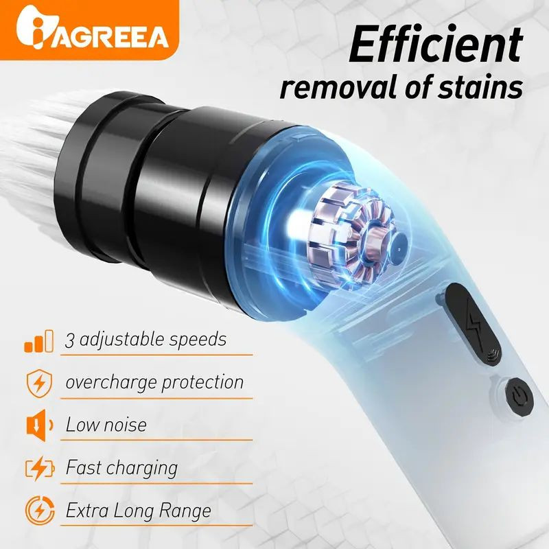 دسته تلسکوپی بلند: قابل افزایش برای تمیزکاری راحتتر بدون نیاز به خم شدن باتری لیتیومی ۲۰۰۰ میلیآمپری با شارژ USB-C: طراحی بیسیم برای استفاده آسان در هر نقطه مناسب برای کاربرد چندمنظوره: آشپزخانه، سرویس بهداشتی، حمام، خودرو و فضای بیرونی